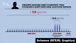«Схеми» представили дані про доходи та витрати й тещі очільника Енергомитниці – Лідії Гладкової.