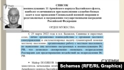 На цій флешці увагу журналістів привернули списки на представлення російських військових до нагород. Те, як командування описує їхні так звані «подвиги», насправді письмово документує, до якого саме способу ведення війни та поводження з місцевими вони вдавались в Балаклії. Колеги з російської служби Радіо Свобода допомогли ідентифікувати декількох з них.