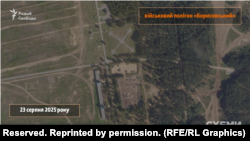 На знімку від 23 серпня на цьому полігоні супутник Planet Labs зафіксував близько 100 одиниць техніки та 10 наметів.