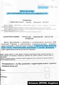 Є у кримінальній справі і ухвалений донецькими депутатами примірник бюлетеня для референдуму.