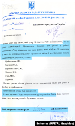 Про вказівки з Банкової повідомив один із керівників Київської облради – у відповідь на запит Генпрокуратури. Окремо зазначив, що «порядок денний цього з'їзду їм був не відомий і що вони ні за що не голосували».