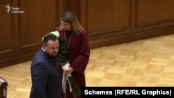 А це – він же, майже 20 років по тому – підносить мантію судді Конституційного суду. Нині він – голова секретаріату цього суду.