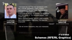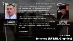 «Схеми» отримали раніше неопубліковані, повні розмови військовослужбовця Шматова, які вдалося перехопити. Ці розмови демонструють уявлення російських громадян, зокрема, через призму його батька – про життя в Україні.