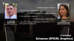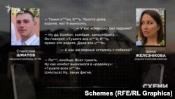 А ось ще фрагмент іншої неопублікованої телефонної розмови згаданого російського солдата Шматова, який опинився у розпорядженні «Схем». Цього разу – із жінкою. Це – його родичка Ірина Желєзнікова.