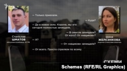 Під час однієї з телефонних бесід на запис потрапили розмови танкіста Шматова з товаришами по службі. Що також допомогло «Схемам» у встановленні місцевості.