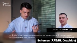– Вы подтверждаете, что рушили дома мирного населения, мучили мирных жителей, военнопленных? – запитав у Шматова журналіст «Схем» Георгій Шабаєв.