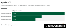 Ще один неурядовий фонд – «Армія SOS» – не зміг надати детальніші дані. Радіо Свобода порівняло підсумки кварталів із сайту організації.