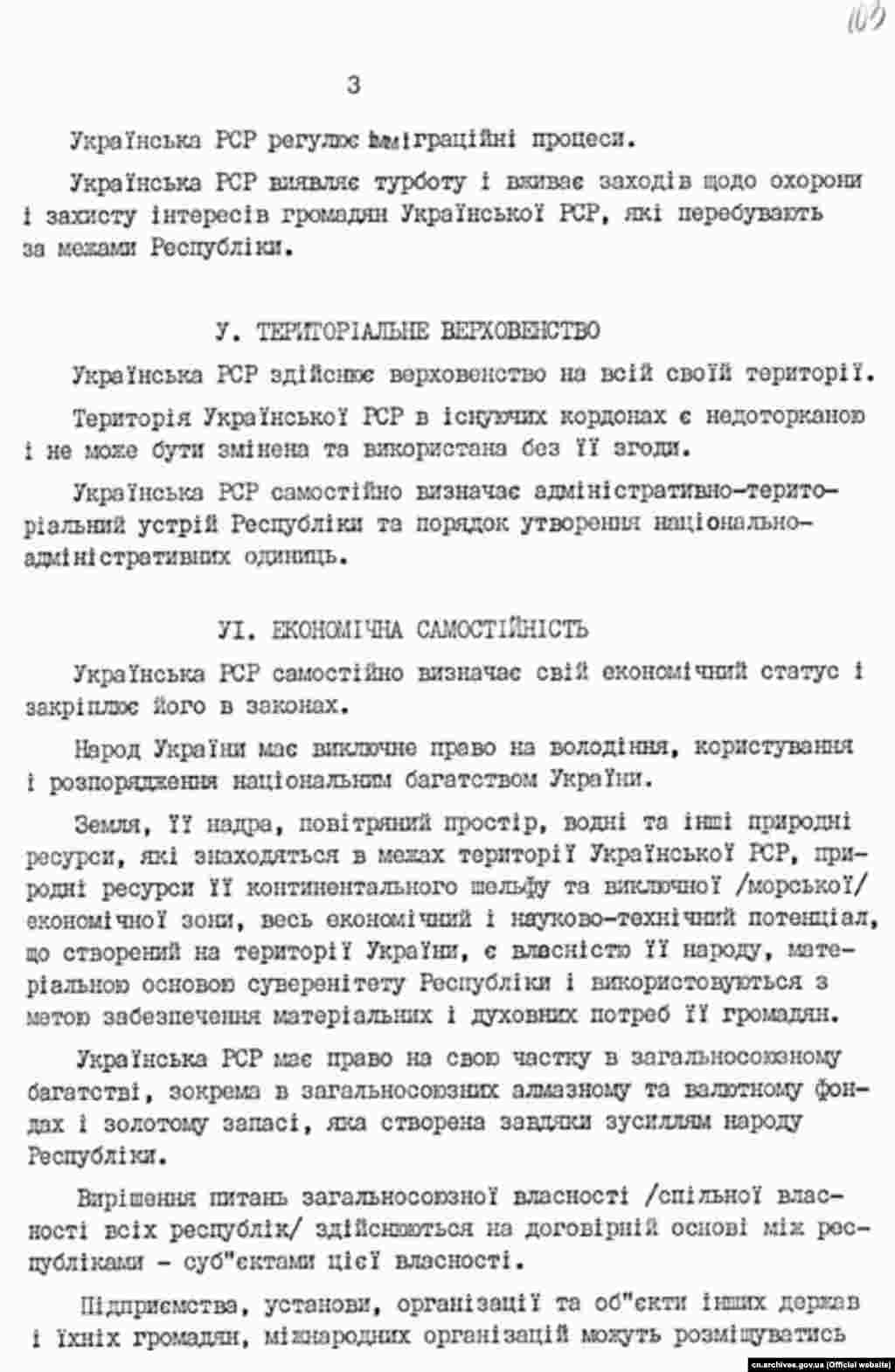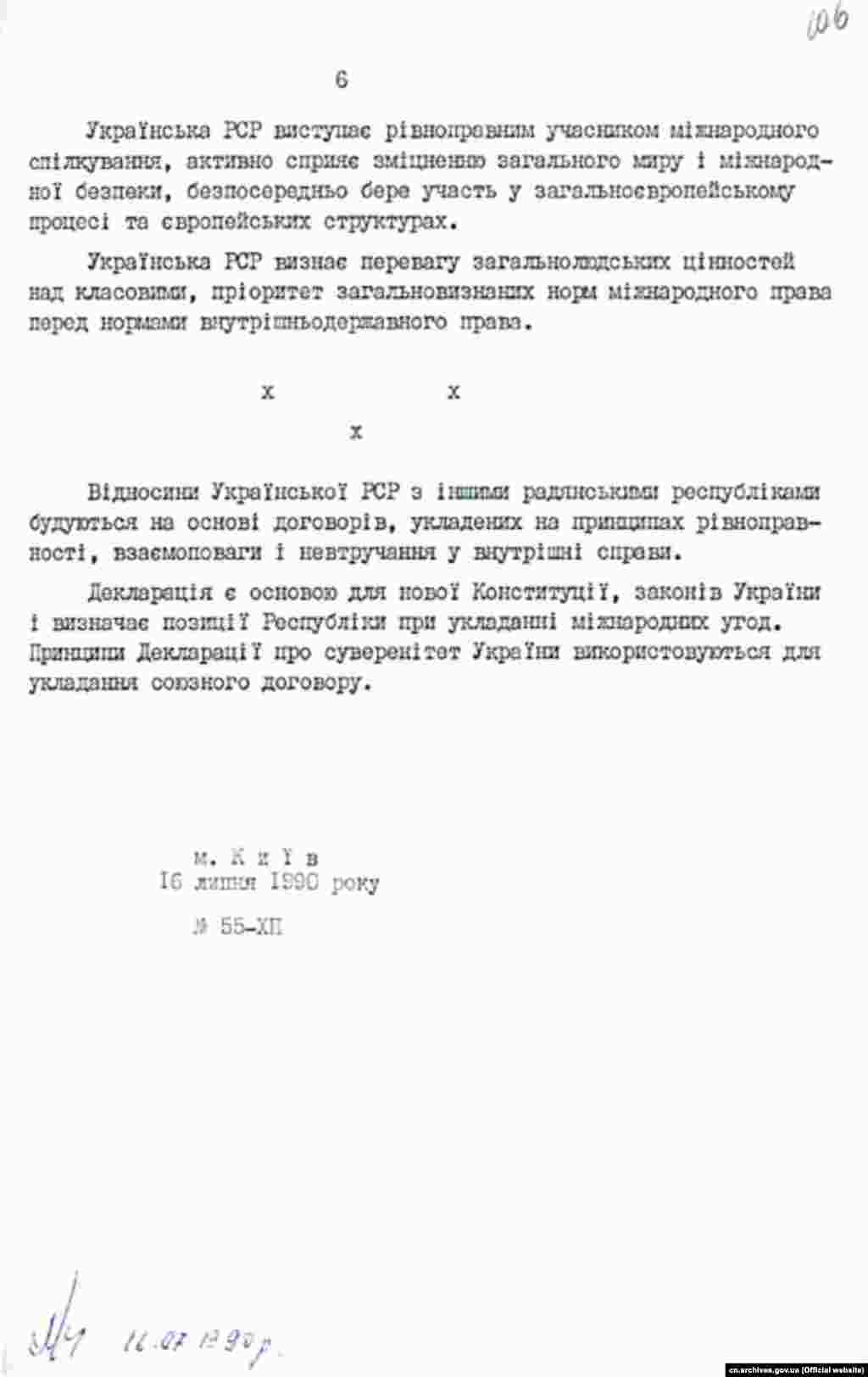 Декларація про державний суверенітет України, що була ухвалена Верховною Радою 16 липня 1990 року. Вступна сторінка