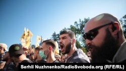«Обов’язково потрібен сьогодні спокій, щоб не було штовханини до моменту, поки не проголосують за Європейський союз та НАТО. Це надзвичайно важливо», – звернувся до активістів радник Парубія Олександр Старовойт. Його ж перебивали активісти й наголошували, що нині, з огляду на останні події (передачу Тумгоєва Росії), найважливіше – убезпечити іноземців-добровольців.