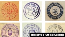 Майже на всіх цих бланках зображений тризуб. Цей геральдичний елемент незмінно присутній і на печатках. Написи на них різноманітні і, вочевидь, зроблені без дотримання якихось чітких усталених вимог. Вочевидь, такі норми, особливо на еміграції, і не існували. Тож тексти на відтисках печаток такі: «Державний секретар», «Міністерство Справ Закордонних», «Українська дипломатична місія в Річі Посполітій Польській», «Надзвичайна дипломатична місія У.Н.Р. в Румунії», «Конзульство Української Народної Республики на Латвиї», «У.Н.Р. Центральне Правління Всеукраїнської Спілки Військових Інвалідів», «Товариство б. вояків Армії У.Н.Р.» та інші.
