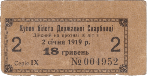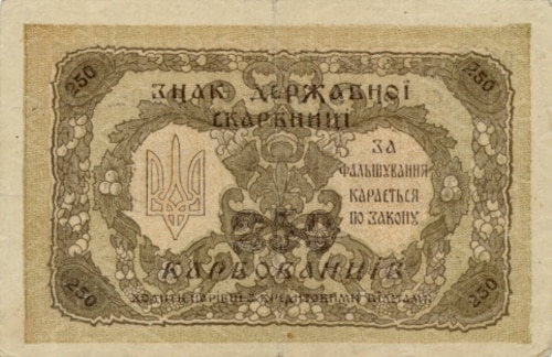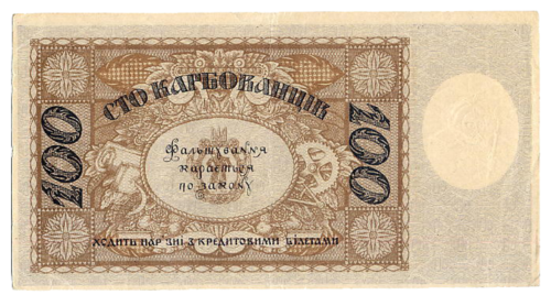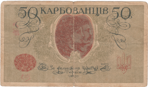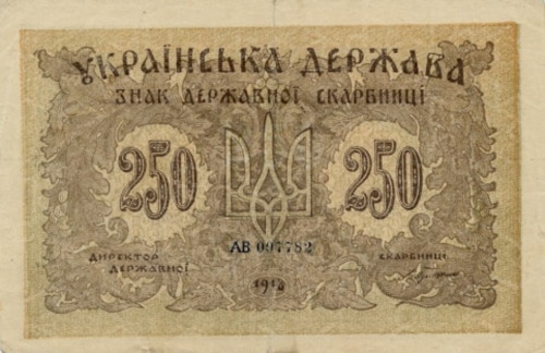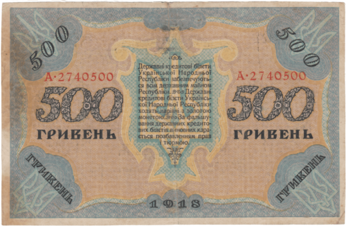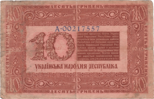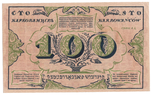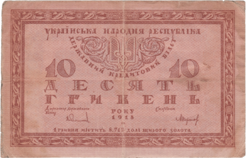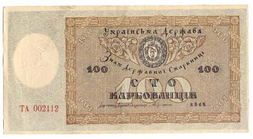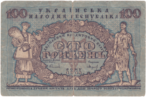 Після проголошення в листопаді 1917 року Третім універсалом утворення Української Народної Республіки, Центральна Рада зініціювала розробку національної валюти. Спершу грошова одиниця УНР отримала назву «карбованець», вартість якого дорівнювала 17,424 долі щирого золота (1 доля = 0,044 грама золота). Першою банкнотою була купюра в 100 карбованців, на ній був вказаний 1917 рік, а в обіг вона увійшла з 5 січня 1918 року.