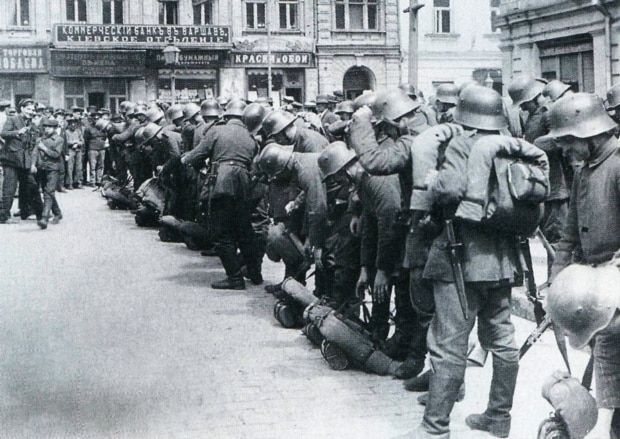 Навесні 1918-го до Києва увійшли німецькі війська. Киян неабияк вразило, що першим ділом німці підрядили жінок вимити захаращений міський вокзал.