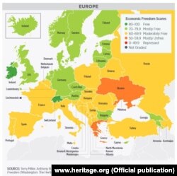 Показник України зріс порівняно з попереднім дослідженням на 2,6 бала головно завдяки поліпшенню ефективності судової системи, чесності в діях влади і свободи торгівлі, мовиться в нинішньому «Індексі економічної свободи», що його щороку укладає The Heritage Foundation. Таким чином, Україна потрапила в європейському регіоні в першу п’ятірку за темпами поліпшення.