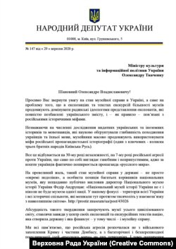Проблему засилля ідеології «русского мира» у музейному просторі України порушували не лише ми. 29 вересня 2020 року група депутатів Верховної Ради (26 підписів) з цього приводу зверталася до міністра культури та інформаційної політики Олександра Ткаченка із запитом.