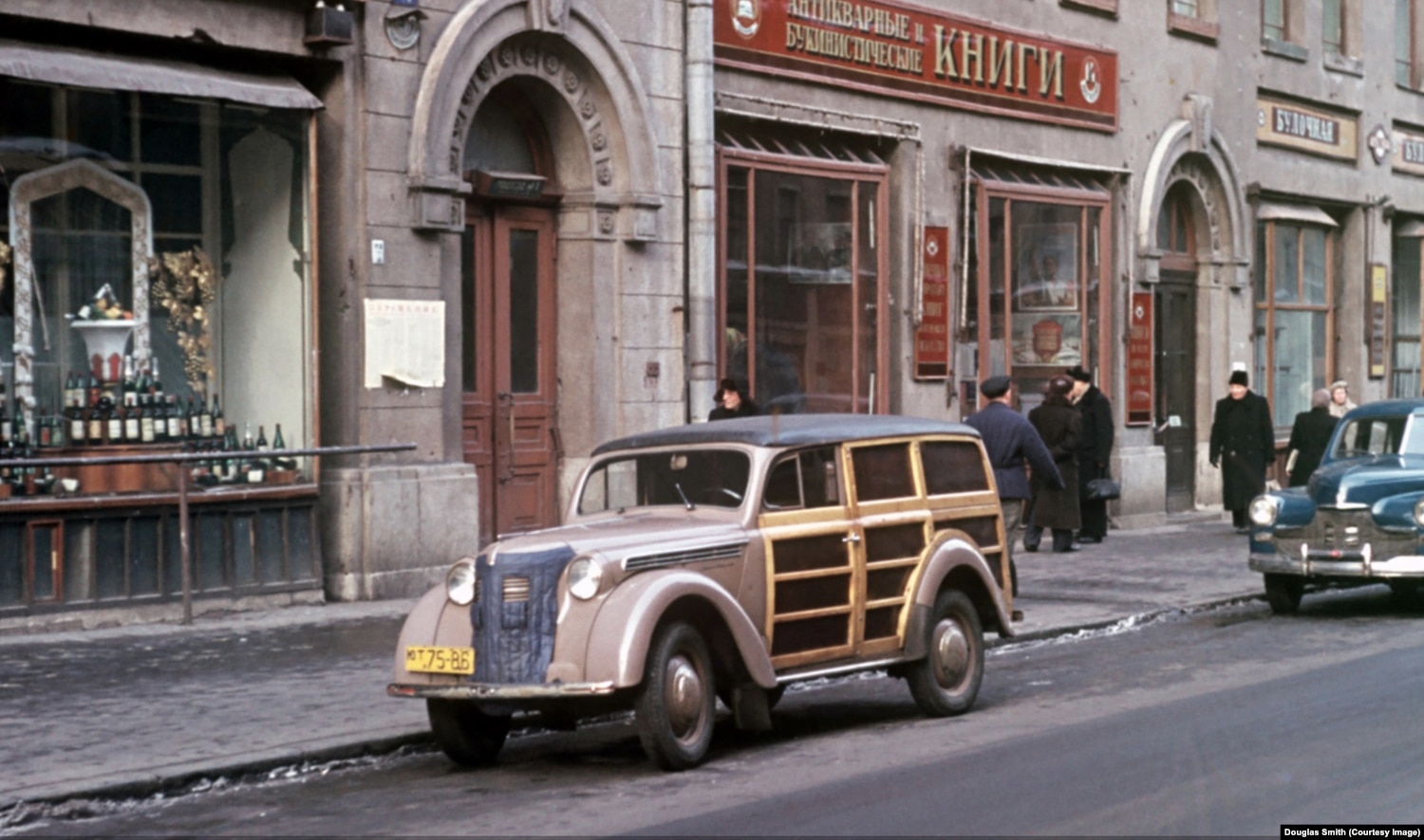 Ford Super Deluxe Woody 1947 року виробництва, оздоблений деревом, дуже доречний для сухої, сонячної погоди каліфорнійського узбережжя. З огляду на дощову російську осінь і значно суворіші зими, СРСР випробували сталь з метою збереження авто.