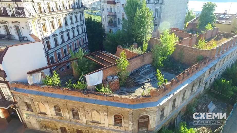 Даних про власників будівлі не було в БТІ та в Мін’юсті – тобто ні в старих, ні в нових реєстрах. У ході дослідження ми виявили, що цю проблему чиновники вирішити не можуть. Цей будинок раніше належав відомій компанії – ЗАТ «Українські сателітарні системи», яке навіть мало охоронні договори, аж поки його не перепродали такому собі ТОВ «ВКП «Подол-бізнес». Воно зареєстроване в самому закинутому будинку, знайти його представників не може й прокуратура в рамках судового провадження.