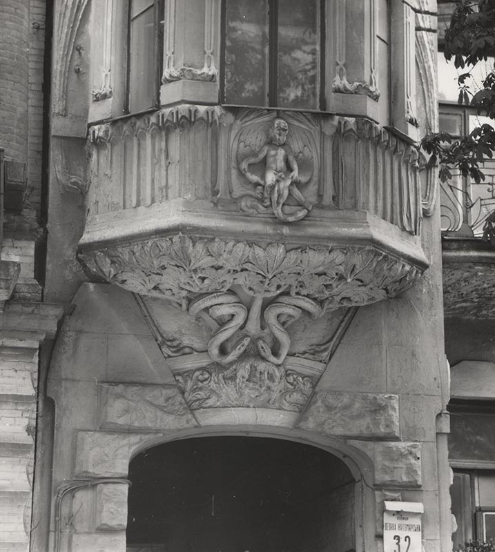 «Цей будинок будувався у 1911-1912 роках, близько до розпаду імперії, на замовлення дворянки з відомої київської родини Софії Чоколової. Архітектор Ледоховський, який проектував цей будинок, разом із В’ячеславом Городецьким фактично були першими із тих, хто започаткував школу київського модерну. Тому дуже багато сенсів несе в собі фасад. Якщо подивитися уважно на каштани, вони мають чотири гілки – це символ сторін світу, пір року, того, що все змінюється. Внизу під каштаном плетуться два змії як символ мудрості, а над ними сидить маленький хлопчик на гусеві-лебедеві. Продовгувата шия птаха, схожа на змію, завернута в бік хлопчика. Це показує, що після відривання від дому, зазвичай чекають пригоди, щось незнане. Це такий своєрідний обряд ініціації, який проходить кожен із нас, наприклад, зараз через освіту чи науку. Також там є читаючі юнаки та дівчата, ангели… Цим фасадом будинок і є цікавий. Орнаментика, смислове навантаження. Треба просто зупинитися, подивитися, подумати».