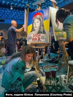 Конкурс відбувався на великій арені, за ним стежило багато глядачів. Робота Юлії називалась «STOP WAR». На фоні синьо-жовтого прапора вона намалювала обличчя дівчини.