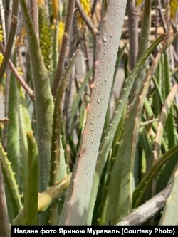 «Коли волонтерка Ярина Чичкевич дізналася, що українські волонтери виготовляють мазі для воїнів на основі алое, то спільно з місцевою українською діаспорою зорганізувала збір листя алое вера і можливість купувати консервований гель з цієї рослини. У нас невеликий сад. Ми посадили алое вера, яке не потребує догляду, воно собі росло кілька років. Я запропонувала, що можемо відправити листя в Україну.