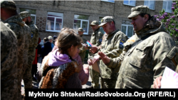 Недельная экспедиция волонтеров подошла к концу. Дети Новгородского интерната собрали свои и чужие рисунки с ангелами и торжественно вручают их военным – в школу приехали два взвода пехотинцев, мужчины и женщины в полевой пиксельной форме. «Мы всегда готовы их защитить и поддержать, дети – наши будущее», – говорит Радио Донбасс.Реалии один из солдат.