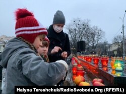 «Яблука дітям принесла. Я думаю, що вони дивляться на нас, і ми за них проживаємо життя. Мама мені з дитинства розповідала про Голодомор. Ми завжди знали, що він був. Коли люди сміялися, говорили, що його не було, я завжди знала, що голод був. Мама більше розповідала про 46-47-й роки, а про 32-33-й завжди у сім’ї пошепки розповідали», – каже учасниця акції на ім’я Наталя.