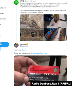 А ось, наприклад, у відповідь на повідомлення про затримання та перевірку відомого російського депутата Рашкіна користувач твітера залишив коментар про те, що у нього знайшли «візитку Яроша.