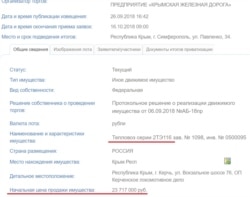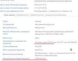 Федеральне державне унітарне підприємство «Кримська залізниця» ініціювала приблизно 50 аукціонів для продажу майна підприємства майже на 40 мільйонів рублів, заявлених як початкова ціна всіх лотів.
