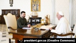 РИМ – Від часу повномасштабного вторгнення Росії до України папа Римський Франциск втретє зустрівся з президентом Володимиром Зеленським, і вдруге прийняв його у Ватикані 11 жовтня. Співрозмовники надали перевагу гуманітарним аспектам, у яких співпрацю вважають ефективною, і де ватиканська дипломатія засвідчує свою дієвість. Упродовж недовгої розмови – понад пів години – йшлося передусім про повернення з Росії полонених і депортованих українців. Переговори у Державному секретаріаті Ватикану присвятили шляхам пошуку справедливого й тривалого миру. На відміну від минулорічної аудієнції, цього разу оглядачі відзначають спокійніший та позитивніший характер зустрічі двох лідерів, попри суперечливі заяви й кроки Франциска упродовж двох з половиною років великої російсько-української війни.