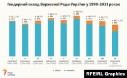 У Верховній Раді України – 21% депутаток, а в уряді – із 21-го міністра лише дві жінки. З такими показниками Україна аж на 110 місці у світі за гендерною рівністю у вищих ешелонах влади. Як за 30 років незалежності змінився гендерний баланс у владі?