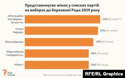 У Верховній Раді ситуація дещо змінилася під час виборів 2019-го. Майже всі політичні партії дотрималися 30-відсоткової гендерної квоти. А найбільша частка жінок у списках партій сягла 33%.