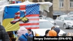 Банер із зображенням прапорів України та США в центрі Києва 6 листопада: