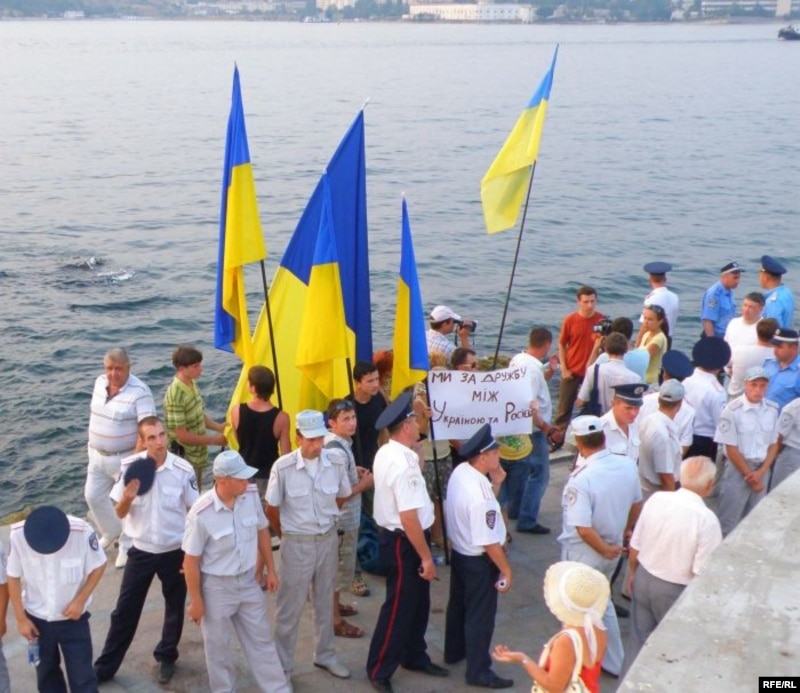 За словами Яценка, лише рішучі дії окремих севастопольських міліціонерів перешкодили «агресивним настроям» російських військових і націоналістів, які намагалися побити українських студентів. Разом з тим активісти проросійських організацій розірвали плакат, з написом: «Після походу до Грузії крейсеру «Москва» – не місце в Україні!».