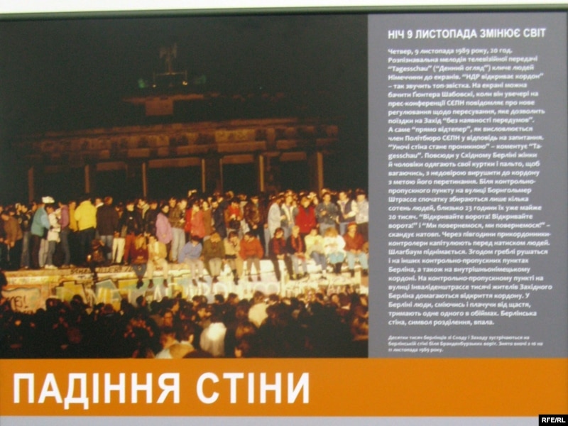 Київ – До двадцятої річниці падіння Берлінського муру у Києві відкрилася виставка плакатів «Від мирної революції до німецької єдності». Виставка – це екскурс у події того часу, які стали можливими лише на тлі історичного зламу в Європі, вважають організатори.