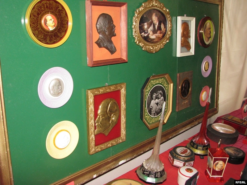 Серед експонатів – значки, вимпели, марки, листівки, плакати, книги, бюсти, барельєфи, сувеніри і репродукції картин радянських часів із зображенням Володимира Леніна, а також інших вождів і класиків радянського тоталітаризму: Маркса, Енгельса і Сталіна.