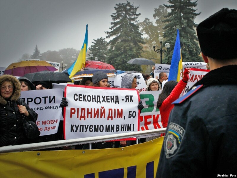 Київ – Під стінами Верховної Ради у середу виступали проти заборони імпорту секонд-хенду. Понад 600 учасників акції протесту вимагали від депутатів не підтримувати норму, внесену урядом у проект Податкового кодексу, яка, в разі ухвалення, унеможливить ввезення уживаного одягу до України. Новину про можливість заборони ввезення такого товару повідомив голова Держкомпідприємництва Михайло Бродський. За його словами, лише у 2010 році до країни завезено майже 40 тисяч тонн секонд-хенду на суму понад 39 мільйонів доларів. Водночас, організатори акції протесту вважають, що в Україну імпортується така кількість уживаного одягу, на яку є попит.