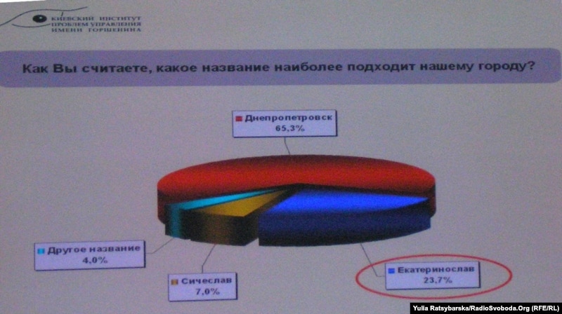 Дніпропетровськ – Кожному третьому жителю Дніпропетровська не подобається назва його міста. Такі дані соціологічного дослідження в п’ятницю оприлюднила місцева філія Інституту імені Горшеніна. «Дніпро», «Дніпровськ», «Січеслав», «Катеринослав» – такі альтернативні назви обласного центру пропонують громадські діячі та історики.