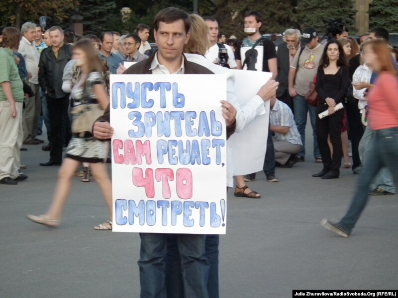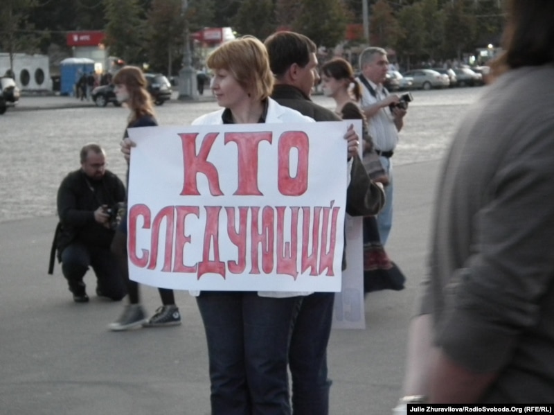 Вшанування пам'яті Георгія Гонгадзе у Харкові. Журналісти АТН прийшли на майдан із плакатами на захист свободи слова, 16 вересня 2011 року