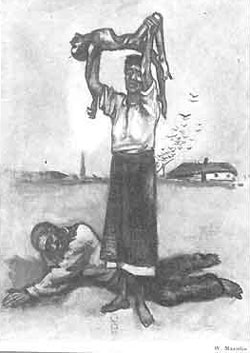 Л. Я.: «Станція Рамодан. Поїзд «Київ-Харків». Зупиняється. На платформі бредуть юрми голодних і жебраків… А між ними одна юна жінка з немовлям. Вона підбігає до вагонів і просить: Візьміть цю дитинку! Візьміть мою дитинку, бо вона не виживе!...».