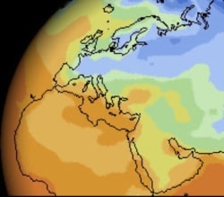 Температурна мапа Європи.Взимку цвітуть дерева
