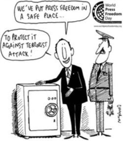 У мусульманському світі карикатуристи зазнають труднощів у своїй професії. Карикатурист з Алжиру Алі Ділем розповів: Конституція його країни обумовлює, що іслам не можна критикувати. Заборона малювати карикатури на мусульманські теми стала ще суворішою після подій у Данії, каже Ділем. А його французький колега Плантю сказав Радіо Свобода, що проблеми зі свободою слова мають і карикатуристи в Україні. За словами Плантю, на це йому скаржаться українські карикатуристи:
