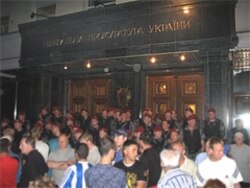 Після цього через кілька хвилин ці люди намагалися прорватись через під’їзд до приміщення Генпрокуратури, однак їм стали на заваді народні депутати, які знаходилися в ГПУ. Втім, 6-м невідомим вдалося проникнути до приміщення.