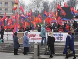Сьогодні кілька десятків мітингувальників з прапорами Компартії та «Русского блоку» намагались потрапити до Секретаріату Президента, однак правоохоронці їм завадили.