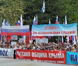 Проросійські організації, які підтримують кримську владу, мітингували під стінами Верховної Ради Криму; опозиційні радикали з Російського фронту Сергія Шувайникова розпочали свій марш від стін Ради міністрів автономії.