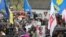 На Соборній площі, де спершу мав відбуватися опозиційний мітинг, черкаська обласна влада організувала «антифашистський мітинг» – концерт «патріотичної» пісні. Кілька десятків черкащан стояли із прапорами Комуністичної партії, Партії регіонів та з блакитними плакатами із підписами Партії регіонів: «У Європу без фашистів», «Ні фашизму в Україні», «Пишаємося Великою перемогою над фашизмом». Причому «фашистами» ті, хто виступав зі сцени, називали нинішніх опозиціонерів, зокрема, ВО «Свобода».