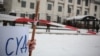 07:51, 26 листопада 2018Шини і фальшфаєри під посольством Росії, неподалік згоріло дипломатичне авто – фоторепортаж